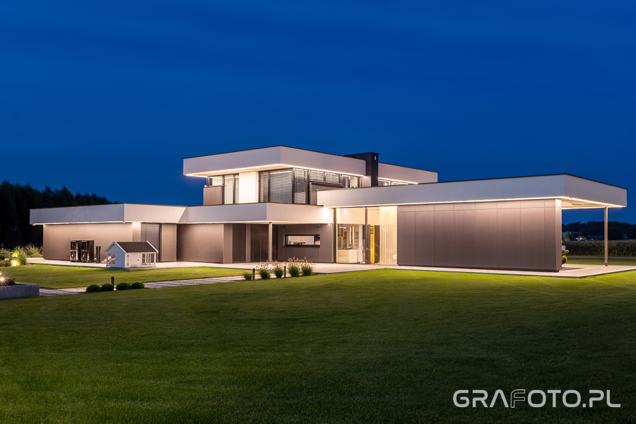 Dla naszego klienta utworzyliśmy zarówno zdjęcia w pełnym świetle dnia, jak i fascynujące ujęcia po zmroku, aby w pełni uchwycić magię tego imponującego projektu.